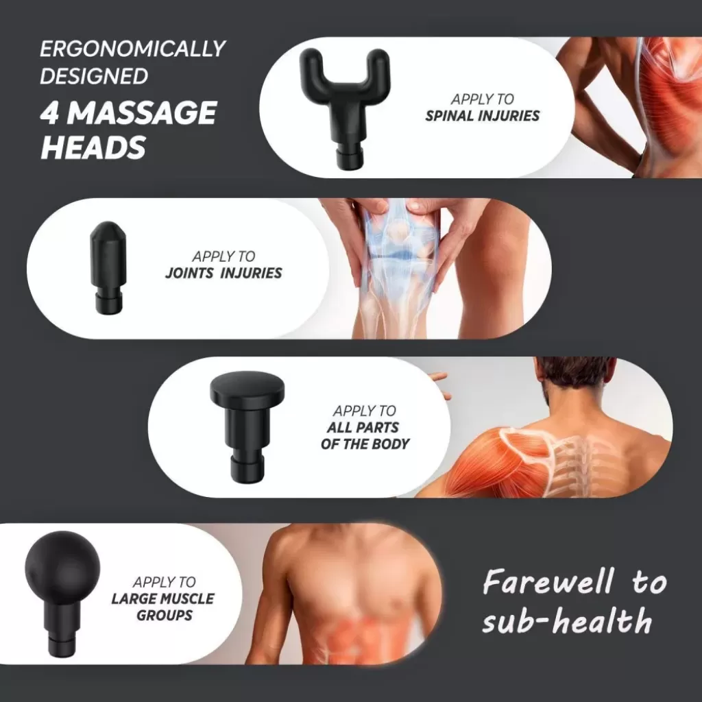 4 Başlıklı Masaj Tabancası – 12w Derin Doku & Kas Ağrısı Giderici, 20 Seviye & 6 Mod - Siyah (4915) Go-53-vice/(1395)