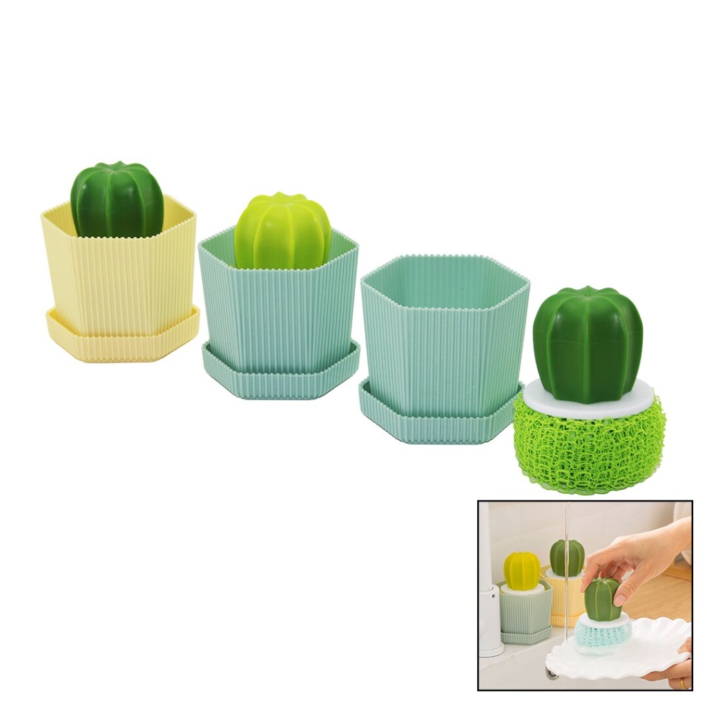 Kaktüs Model Saplı Sert - Renkli Plastik Tel Bulaşık Fırçası Renkli Plastik Tabaklı Hazne (4915) Go-53-vice/(1395)