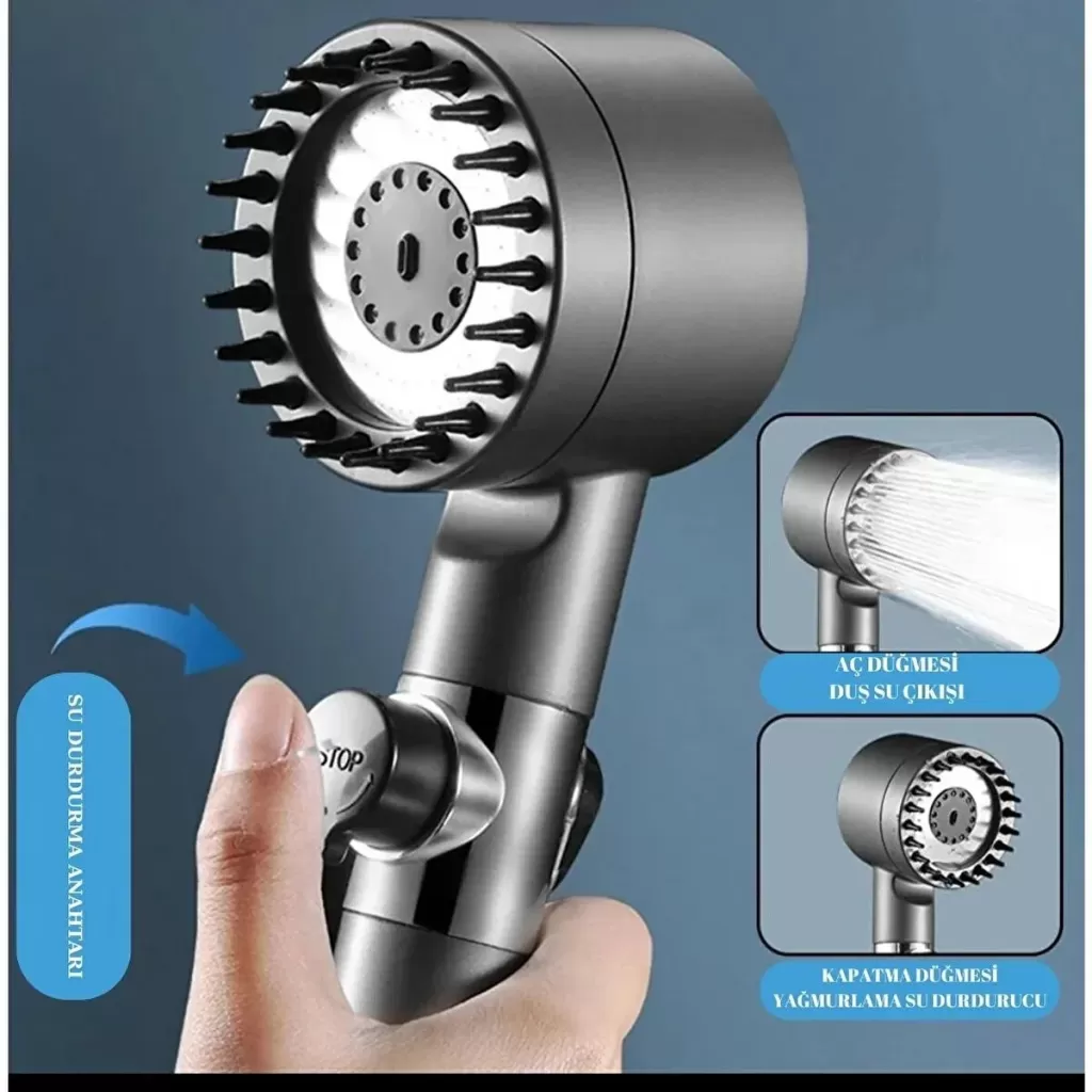Yeni Nesil Çok Masajlı Fonksiyonlu Ayarlanabilir Arıtmalı Krom Kaplı Duş Başlığı El Duşu (4915) Go-53-vice/(1395)